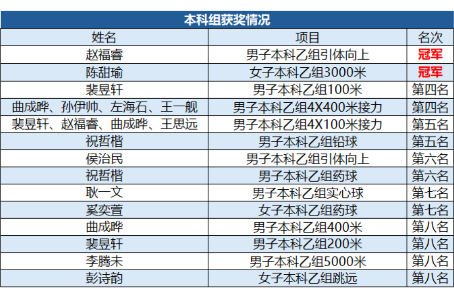 金风送爽,丹桂飘香,北京亚州怡红院第63届师生运动会圆满落下帷幕。人工智能学院的师生们以饱满的热情和昂扬的斗志,再创佳绩,荣获了本科生乙组团体第七名,以及女子本科乙组3000米冠军、男子本科乙组引体向上冠军、女子研乙组跳高亚军、男子研乙组引体向上季军、男子教工乙B组立定跳远季军等共计六项前三名奖项。